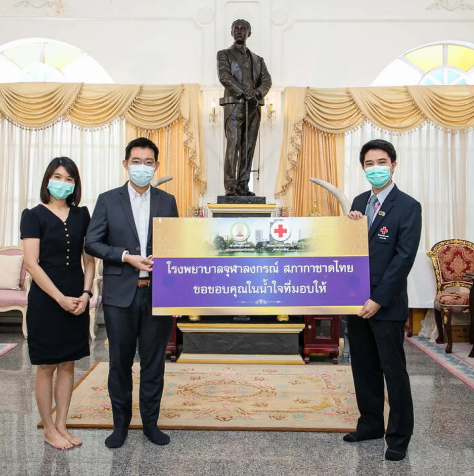 มอบเงินจำนวน 100,000 บาท เพื่อสมทบทุนดูแลช่วยเหลือผู้ป่วยโรงพยาบาลจุฬาลงกรณ์ สภากาชาดไทย โดยมี ผศ.(พิเศษ)