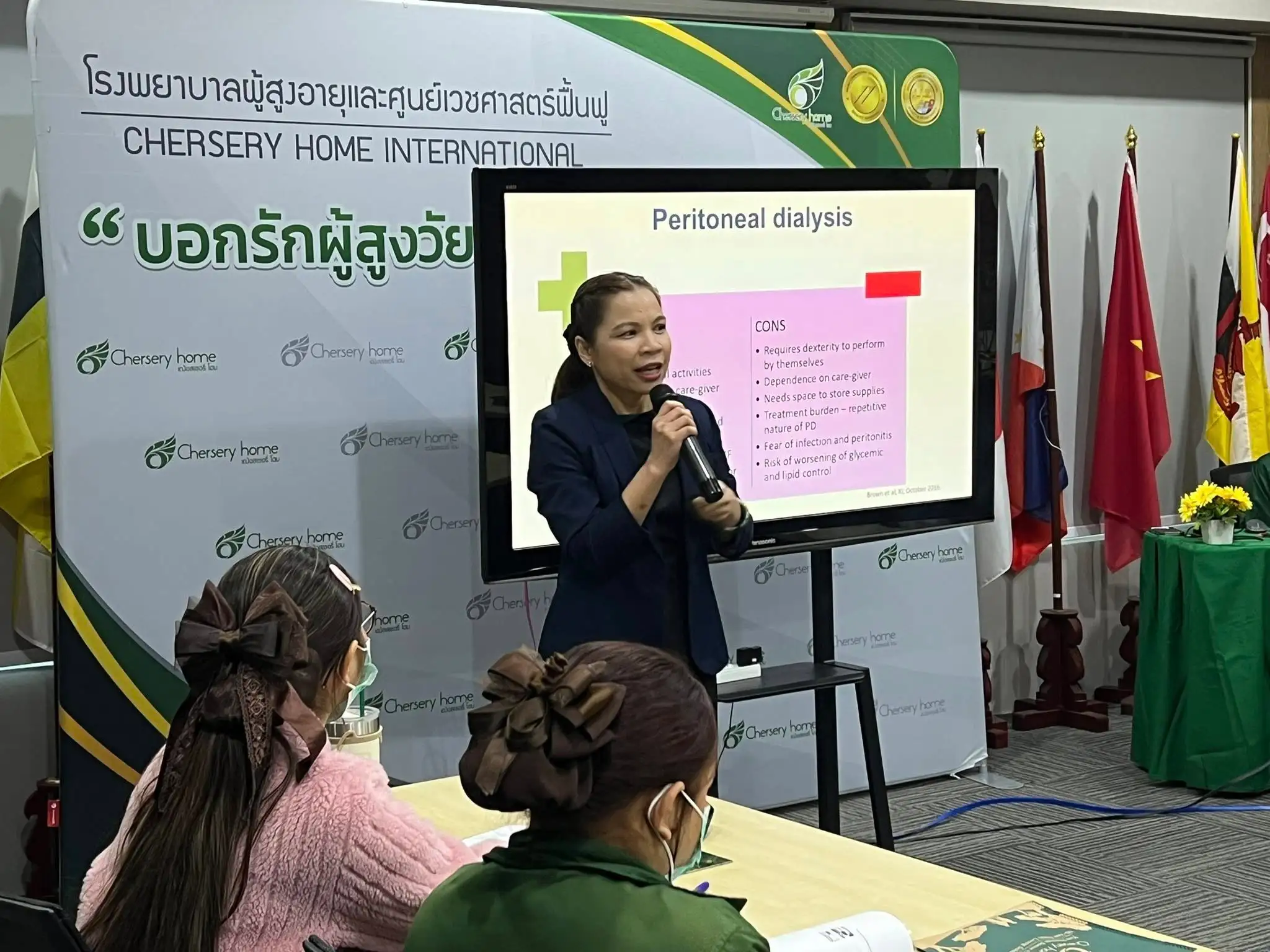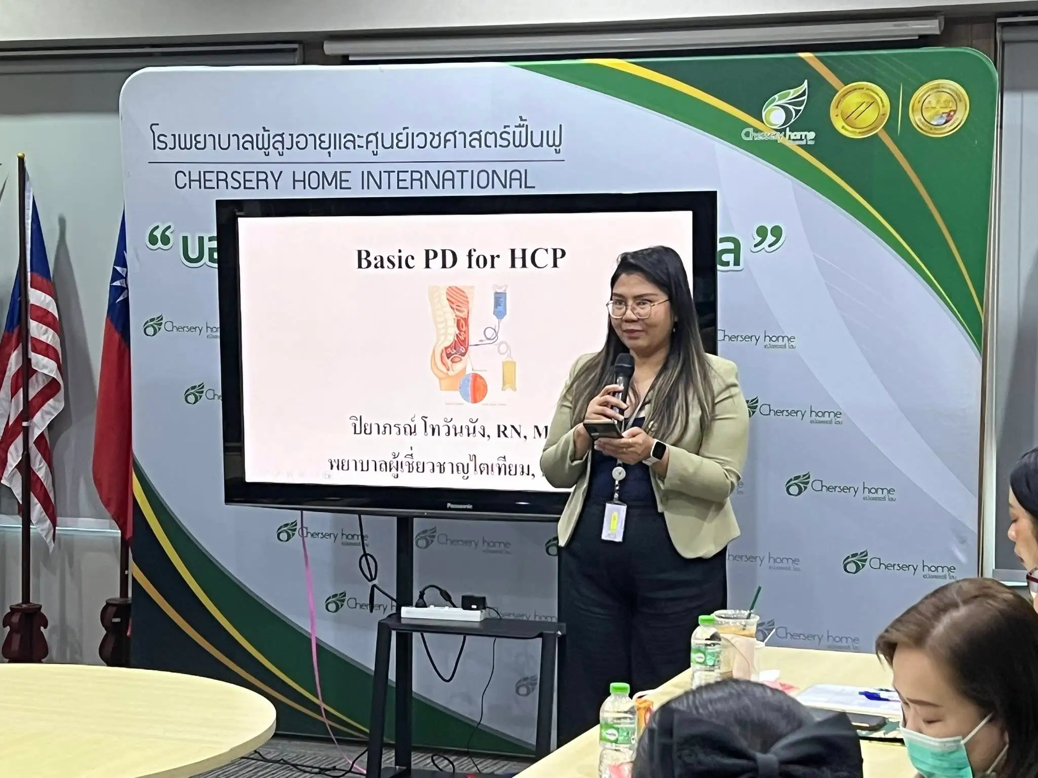 โครงการฝึกอบรมเชิงวิชาการสำหรับผู้ดูแลผู้สูงอายุเกี่ยวกับการดูแลผู้ป่วยโรคไตที่ต้องได้รับการฟอกไตทางช่องท้องได้ดำเนินการสำเร็จลุล่วงไปด้วยดี เรารู้สึกเป็นเกียรติอย่างยิ่งที่ได้รับเกียรติจากคุณปิยพร โตวานัง พยาบาลวิชาชีพผู้เชี่ยวชาญเฉพาะทาง จากโรงพยาบาลจุฬาลงกรณ์ สภากาชาดไทย มาเป็นวิทยากร เราขอขอบคุณบริษัท แบ็กซ์เตอร์ (ประเทศไทย) อย่างจริงใจที่ให้การสนับสนุนการฝึกอบรมเชิงปฏิบัติการที่เป็นประโยชน์อย่างยิ่งสำหรับผู้เข้าร่วมในวันนี้